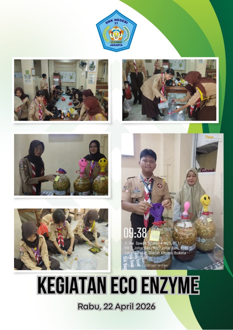 JAKARTA – Dalam rangka memperingati Hari Bumi tahun 2026, SMKN 31 Jakarta turut ambil bagian dalam "Gerakan Serentak Sekolah Adiwiyata Membuat Eco Enzyme". Aksi lingkungan yang produktif ini dilaksanakan pada hari Rabu, 22 April 2026, bertempat di area sekolah.
