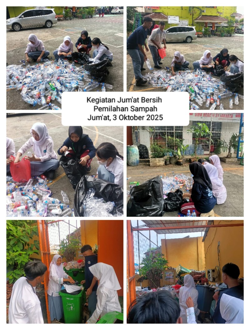Kegiatan ini melibatkan seluruh siswa, guru, dan tenaga kependidikan dalam menjaga kebersihan lingkungan sekolah serta menanamkan kebiasaan memilah sampah sesuai jenisnya — organik, anorganik, dan B3 (bahan berbahaya dan beracun).