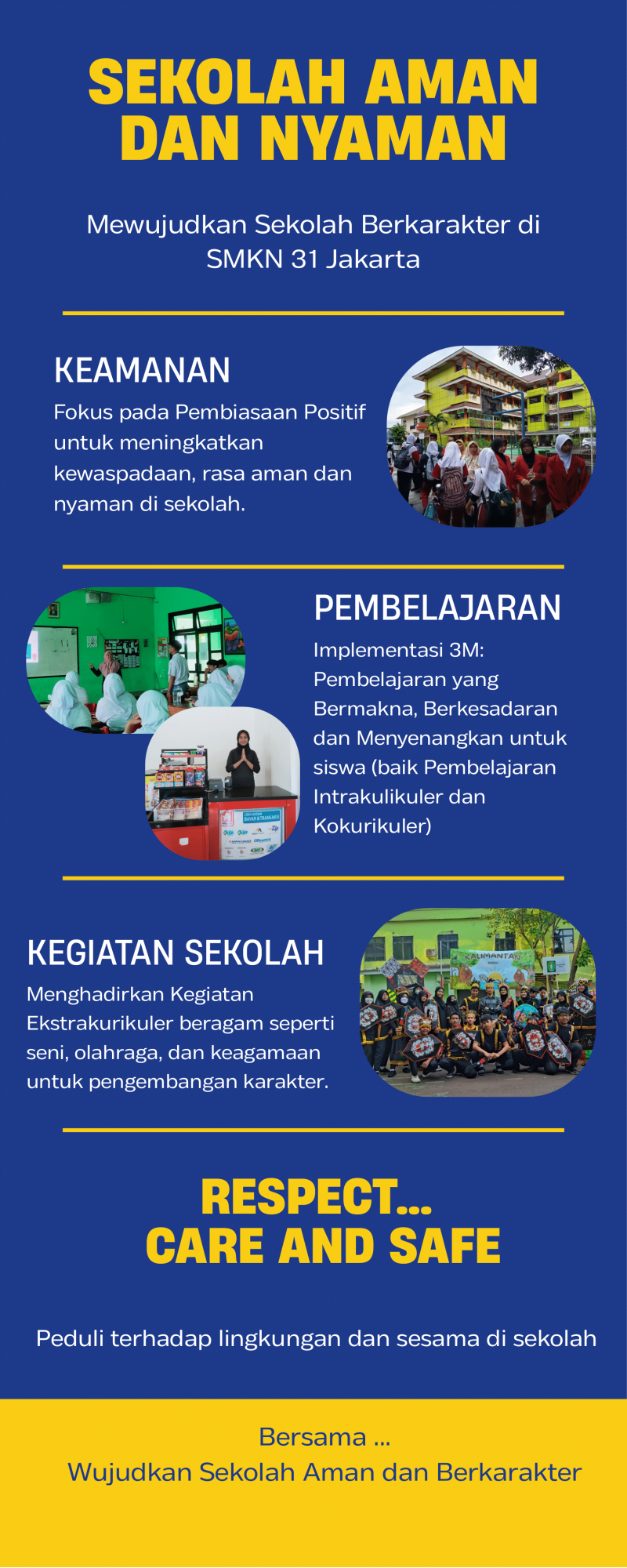 Dengan semangat kolaborasi antara guru, siswa, dan seluruh warga sekolah, SMKN 31 Jakarta terus berkomitmen menjadi sekolah yang aman, ramah, serta inspiratif. Diharapkan, langkah nyata ini dapat menjadi contoh bagi sekolah lain dalam mewujudkan pendidikan yang berkualitas sekaligus menumbuhkan rasa aman dan kebersamaan di lingkungan belajar.