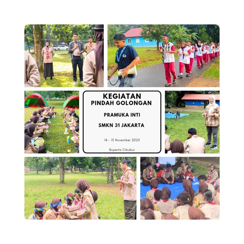Cibubur — Kegiatan Pindah Golongan Pramuka Inti SMKN 31 Jakarta berlangsung sukses dan penuh semangat selama dua hari, Kamis–Jumat, 14–15 November 2025, bertempat di Buperta Cibubur. Kegiatan ini menjadi momentum penting dalam proses pembinaan karakter, kedisiplinan, dan kepemimpinan bagi peserta didik kelas X.