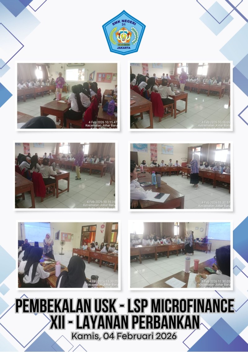 Pada hari Kamis, 04 Februari 2026, siswa kelas XII Layanan Perbankan (LP) mengikuti pembekalan intensif bersama LSP Microfinance. Berdasarkan skema sertifikasi Pelaksanaan Proses Pinjaman, materi pendalaman yang dibahas meliputi: