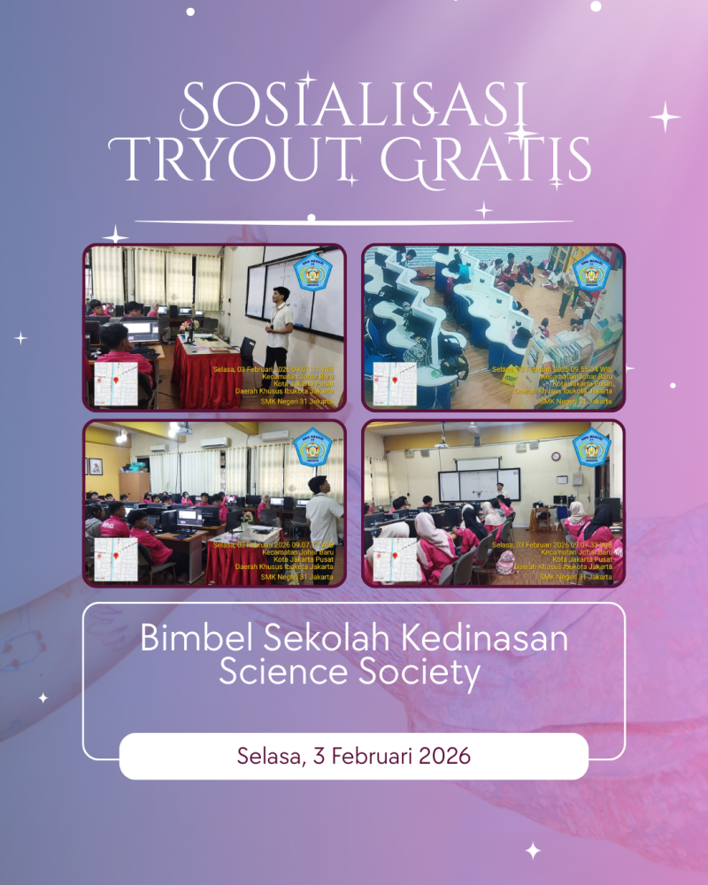 JAKARTA – SMK Negeri 31 Jakarta terus berupaya memperluas wawasan masa depan para siswanya, tidak hanya di dunia industri tetapi juga di sektor kedinasan. Pada hari Selasa, 3 Februari 2026, sekolah menyelenggarakan kegiatan sosialisasi bersama Bimbel Sekolah Kedinasan Science Society.