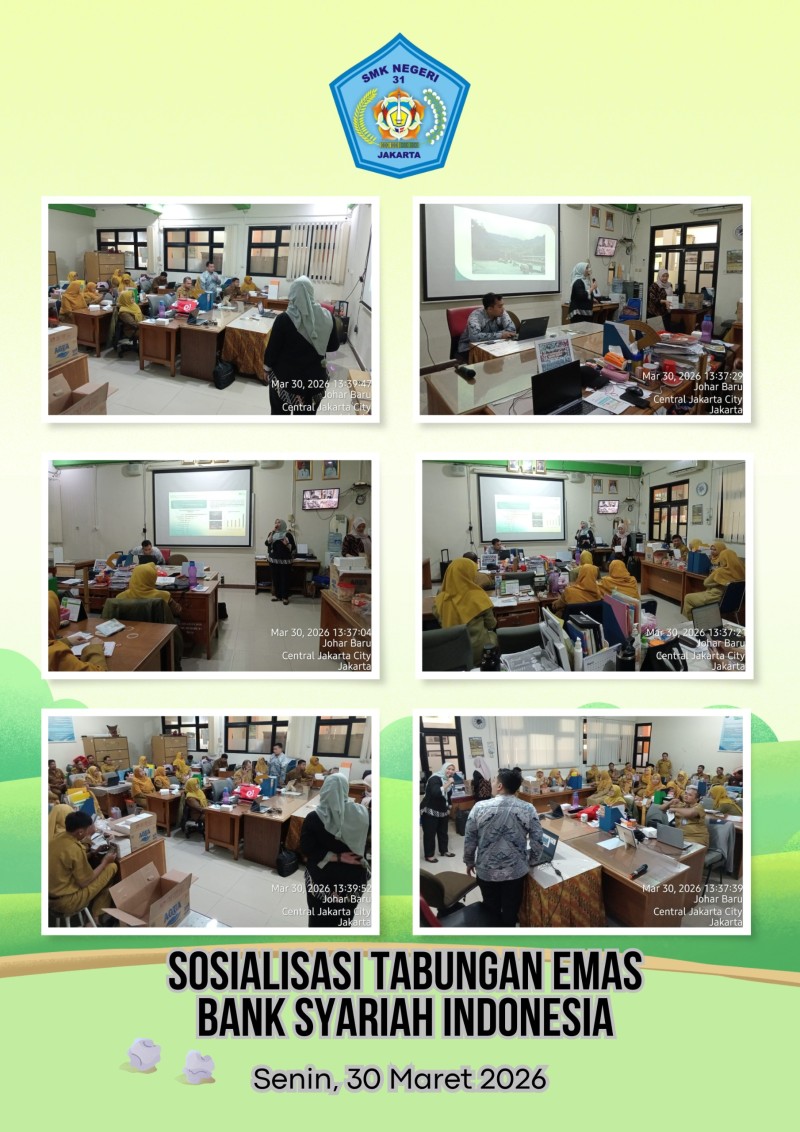 JAKARTA, 30 Maret 2026 — Sejalan dengan komitmen sekolah untuk terus memberikan nilai tambah bagi para pegawainya, SMKN 31 Jakarta menggelar kegiatan Sosialisasi Program Bank Syariah Indonesia (BSI) pada Senin (30/3). Bertempat di Ruang Guru, kegiatan ini dihadiri secara antusias oleh jajaran Guru serta Tenaga Kependidikan (Tendik).