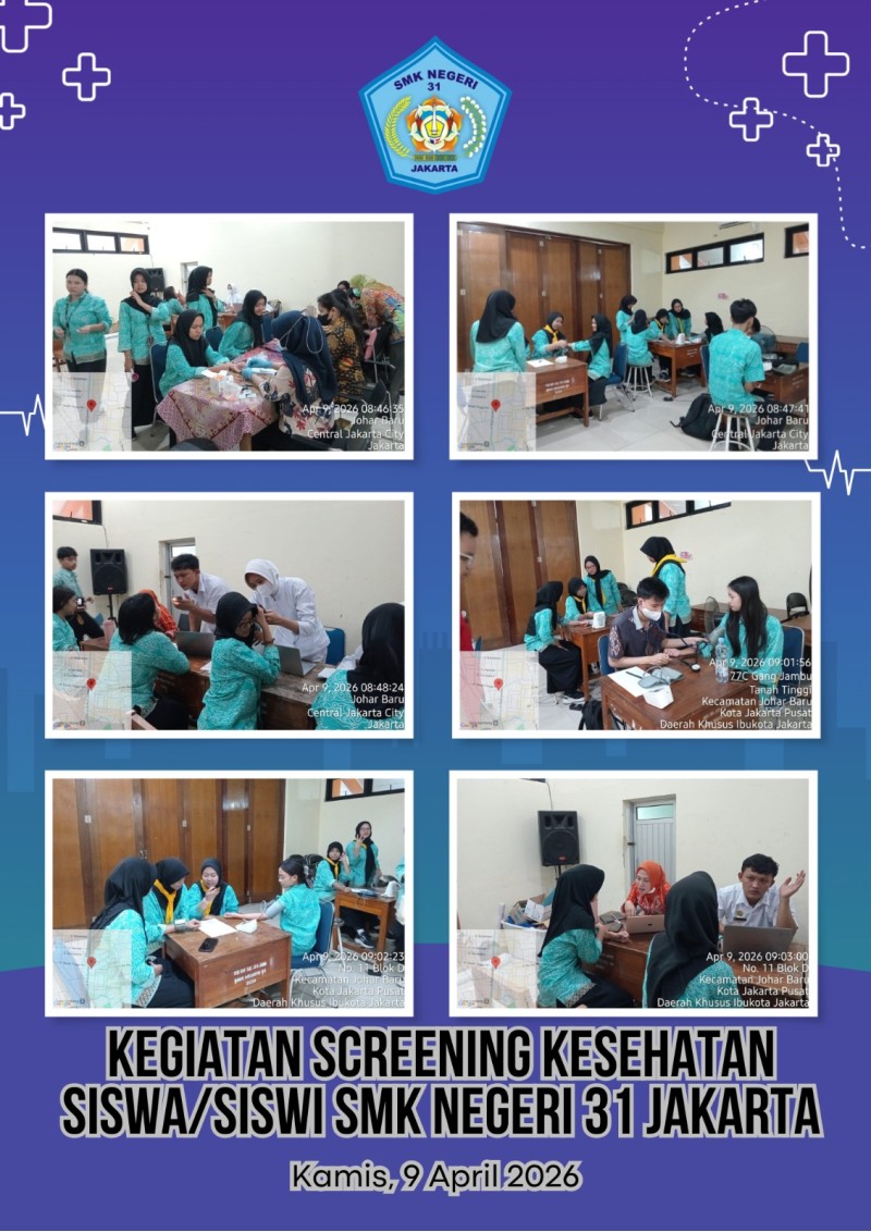 JAKARTA – Kesehatan remaja merupakan faktor krusial dalam menunjang keberhasilan proses belajar mengajar. Menyadari hal tersebut, SMKN 31 Jakarta bekerja sama dengan Puskesmas Johar Baru menyelenggarakan kegiatan skrining kesehatan berkala bagi seluruh siswa kelas 11 dan 12 pada hari ini, Kamis (9/4/2026).
